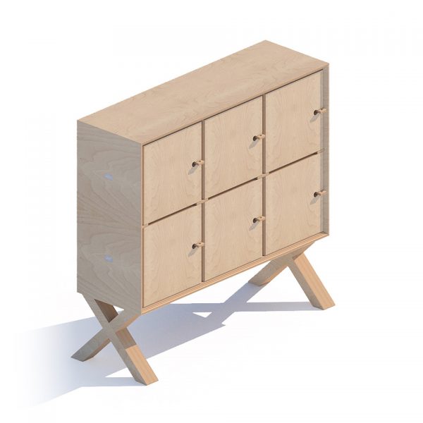 The lockers have the classic X leg format which provides a solid and stable base upon which the locker unit stands. The main body of the unit as well as the doors are constructed from 23mm birch faced plywood which has a water based lacquer finish which maintains a natural birch finish. The units are entirely plastics-free and built to last.
